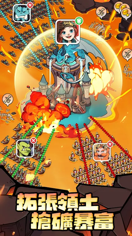4. 要面对熔岩巨兽挑战,召集盟友组队战斗,在争夺宝藏资源中成为富豪。