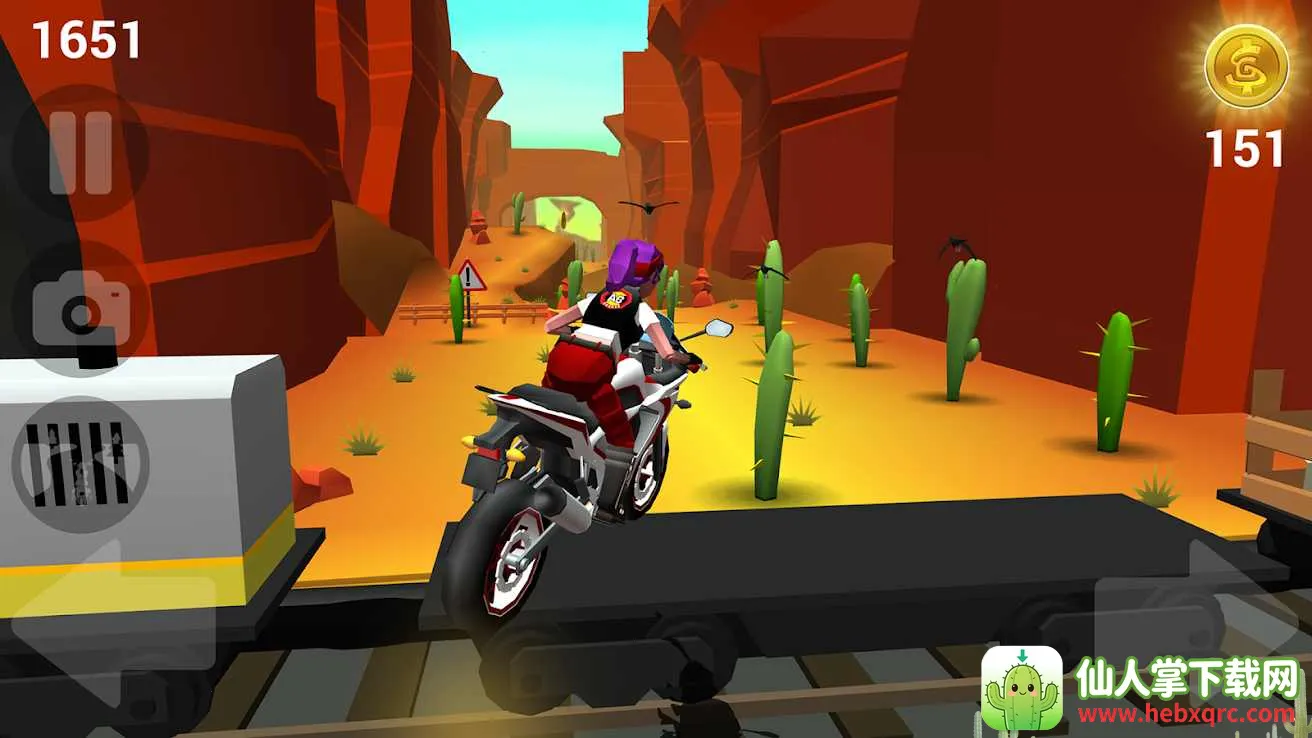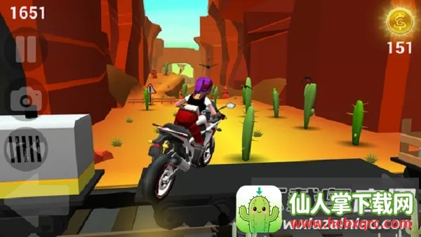 这款游戏场景呈现巧妙,由领先公司打造,真实体感扎实新颖。游戏过程紧张刺激,玩家要在山峦间躲避仙人掌、岩石、车流与火车等危险,体验惊险驾驶旅程。**高品质画面营造出逼真沉浸氛围**,核心玩法是摩托车竞速,能感受驾驶自由与快感,还可收集硬币解锁车辆与服装。越野元素增加刺激感,多样场景待挑战。不过,开启摩托宝箱选第一个虽大概率得炫酷车辆,但实际作用有限,且因物理引擎模拟特性,操控有难度,失控易致游戏结束。