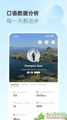 4. 统计总通话时长、活跃词汇量等核心练习数据,用可视化记录展示历程,随时查看练习成绩,明确自身口语水平,找到提升方向,拒绝盲目练习。