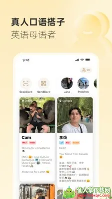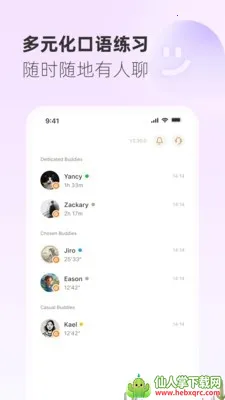 3. 能匹配志同道合的口语搭子,可选择水平相当的练习伙伴,也能对接专业外教,扫码添加好友组队,随时发起语音交流,让口语练习有伙伴有动力。