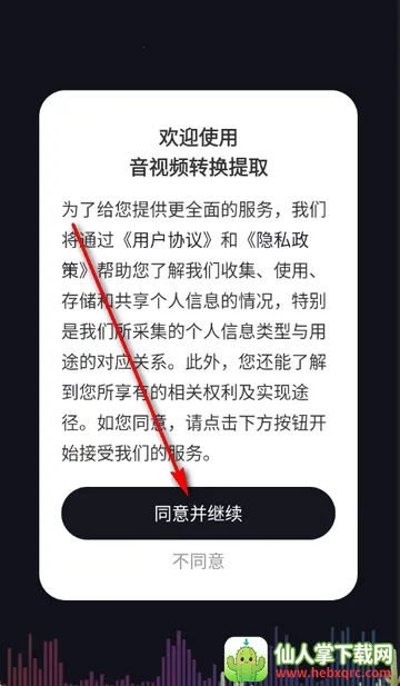 1、打开音视频转换提取app,点击同意隐私政策