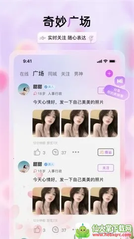 兮音是一款异性交友软件,可多种方式轻松交友。能随时匹配,按偏好选模式,用语音文字聊。还能看动态、搭讪,同城专区机会多,有资料详情、社交广场等功能,支持视频交友、送礼物。