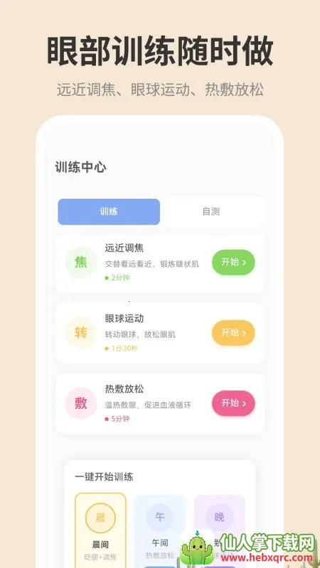 3. 具备眼球专业放松训练,每天提醒完成护眼任务,隔段时间进行眼部测试,让你了解眼睛状况,调整用眼节奏,还能创建专属护眼模式针对性放松眼球。