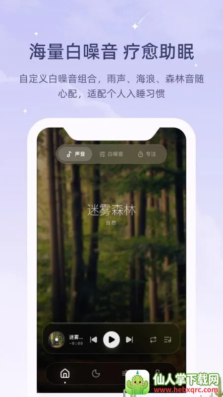 1. 海量助眠音乐自由选,像自然音效海浪、虫鸣、雨声等应有尽有,能随心搭配,帮助快速入眠。