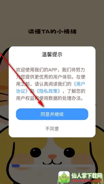 1、打开猫狗翻译工具app,点击同意隐私政策
