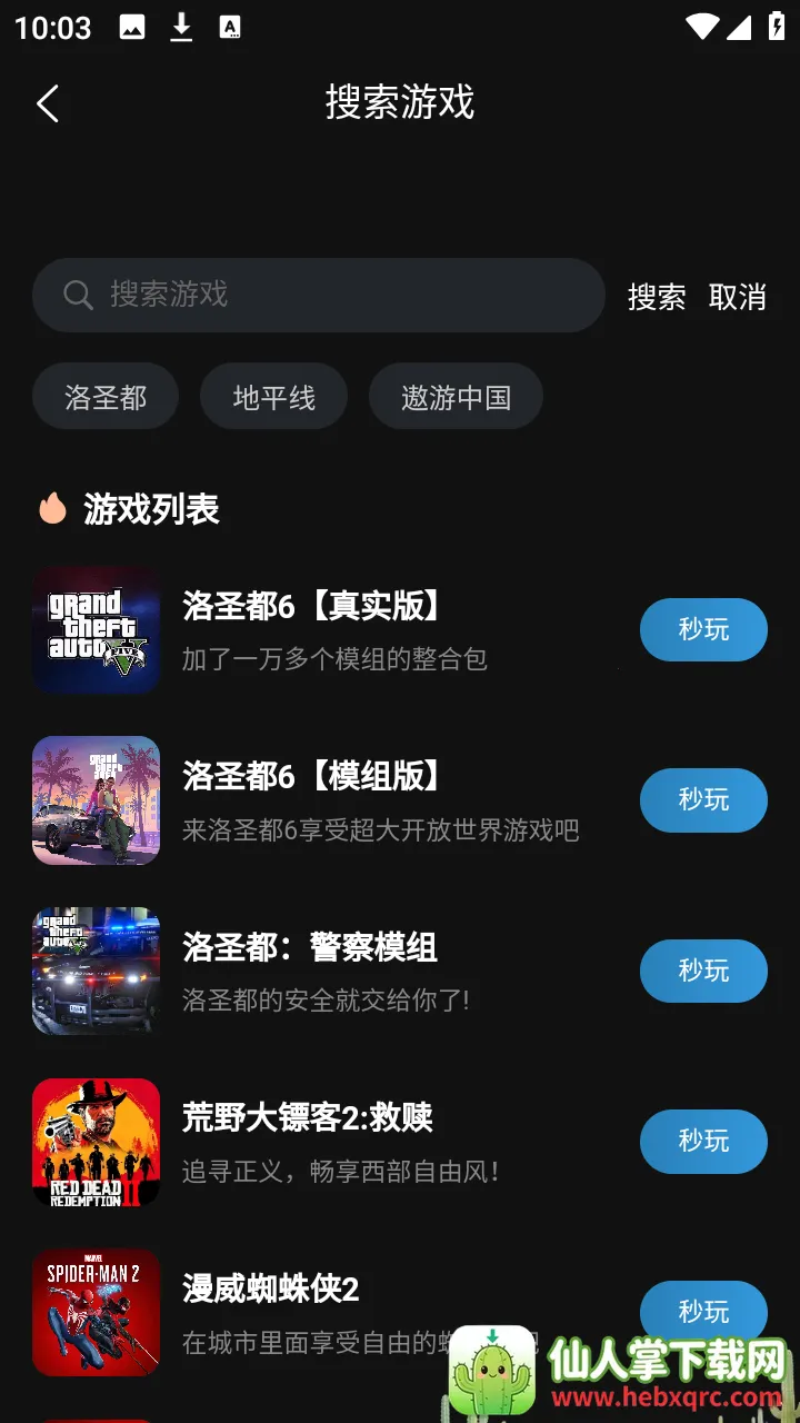 4、所有游戏资源及时更新,让玩家总能玩到最新内容。页面干净整洁,强大搜索引擎助力,方便玩家迅速定位所需资源,操作便捷,输入文字或滑动分类列表就能快速找到心仪游戏,点击即可秒玩,还有贴心商城功能可购买多样商品。