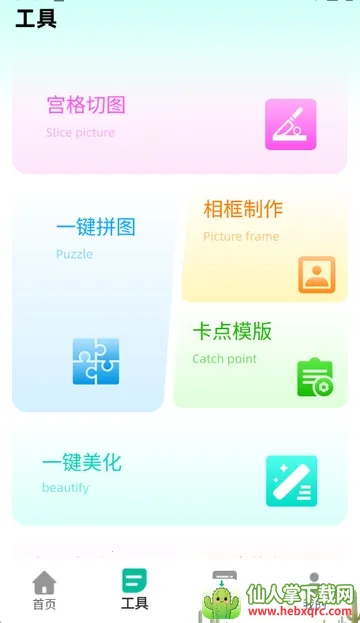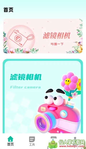 2、进入软件首页,可使用滤镜相机进行拍摄等
