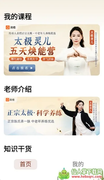 1、打开太极讲堂app,进入软件首页,可查看我的课程老师介绍等
