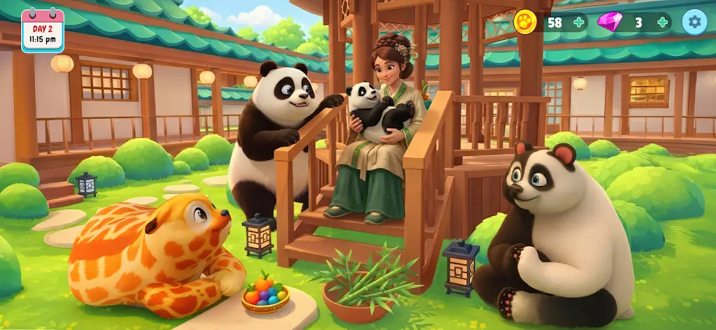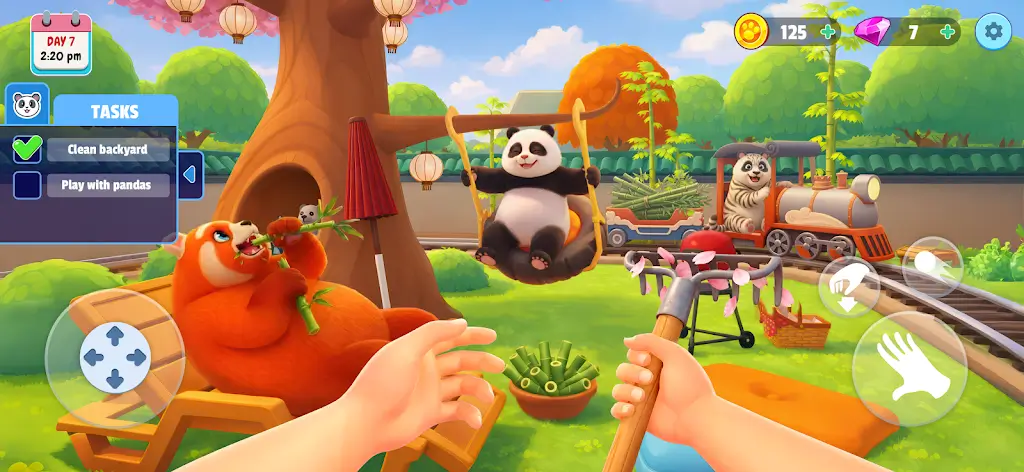 2. 打造美容站,用丰富工具为熊猫刷毛、添加装饰,享受打理乐趣。