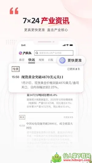 产联社是一款能满足企业机构及行业从业者多方面需求的软件。它能提供精准及时全面的产业动态资讯,不管是企业战略规划、市场研究,还是投资分析,都能给予支持。软件特色众多,AI智能个性化推送会依据用户兴趣和行为,精准推荐定制化资讯内容;7x24小时实时更新,随时带来最新产业动态和政策资讯;结合大数据和AI算法,进行深度趋势预测分析,提供权威行业走势预测;还支持关键词、行业、时间等多条件组合筛选。软件亮点也很实用,能轻松设置字体大小。其优势明显,定期发布热点专题和行业报告,数据可视化展示,多个终端无缝对接,支持手机、平板及PC端同步使用,还能根据用户行为分析反馈持续优化,并且支持离线浏览与收藏夹,方便随时查阅关键资讯。有了产联社,能让你在产业信息获取和分析上更便捷高效。