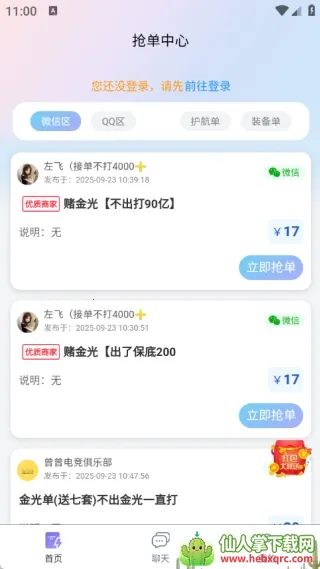 3. 接单多样:实力强可接单,还有打手排行榜,各种游戏陪玩达人任你选,下单享愉快游戏过程。