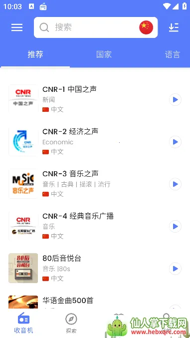 2. 电台数量丰富:收录全球多个国家和地区的网络广播。