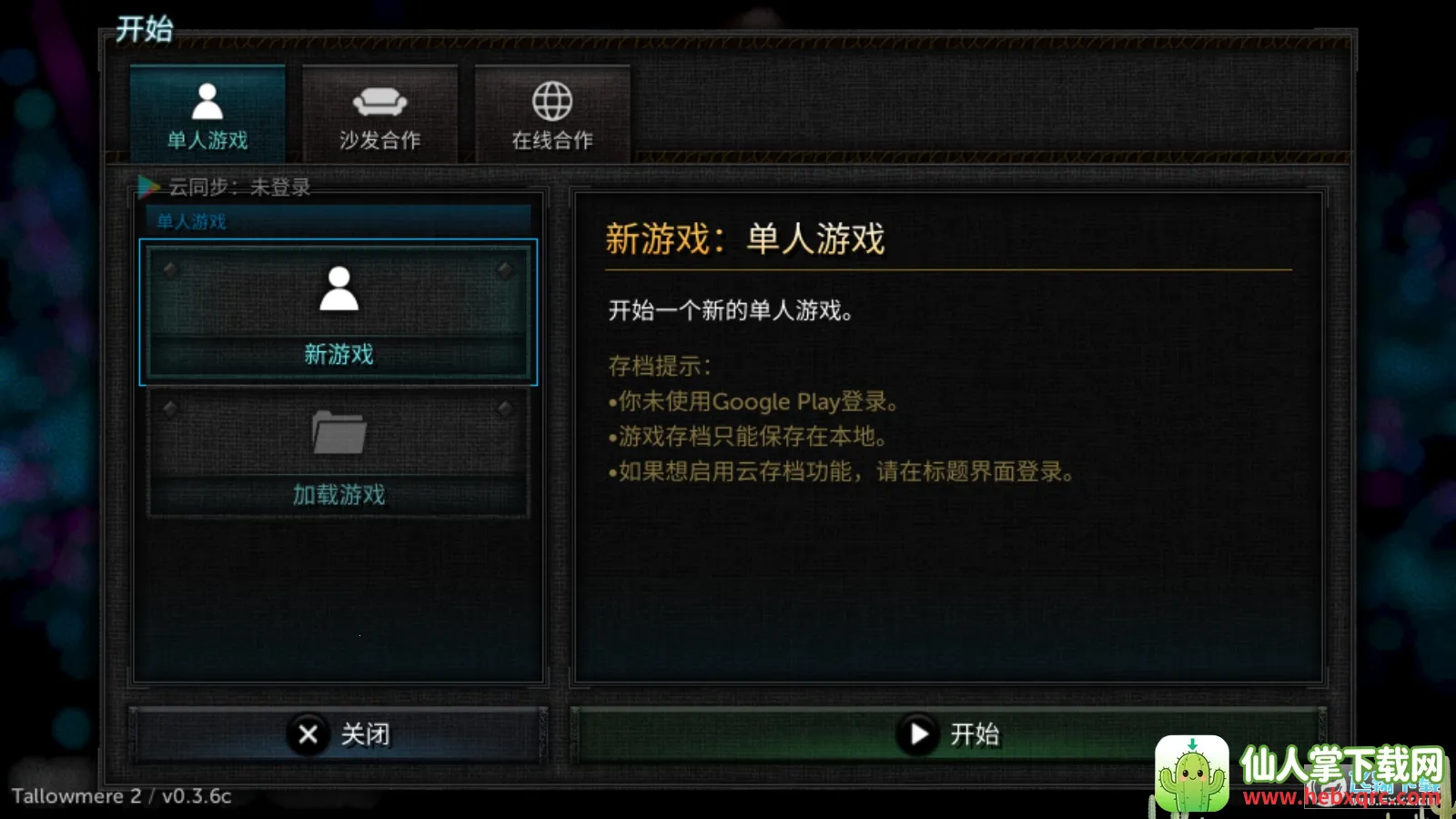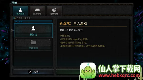 2、游戏总共设置了三种模式,分别为单人游戏,沙发合作以及在线合作,同时还支持使用谷歌账号进行云存档功能。