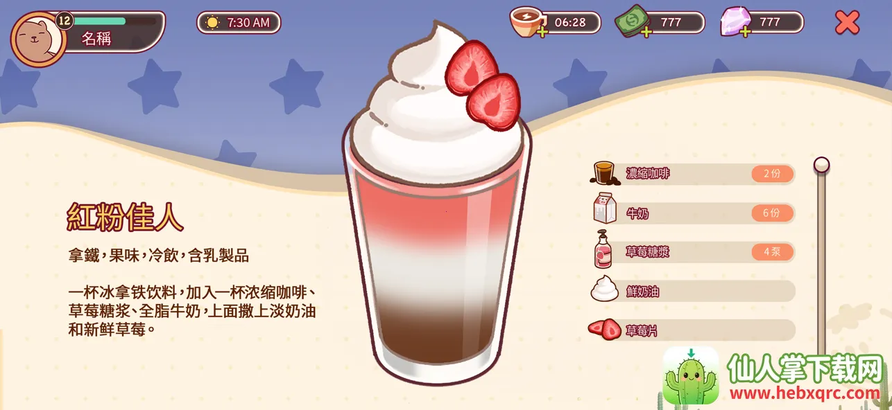 可口的咖啡美味的咖啡是一款清新治愈的咖啡主题模拟经营手游。玩家化身咖啡师,制作各种咖啡,装饰店铺。有超200名顾客,丰富配方,创意拉花,还有精彩剧情与特色音效,内置菜单版提供便捷功能。