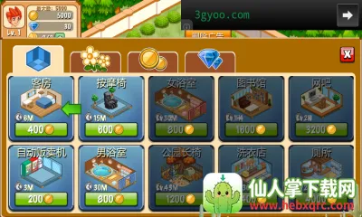 1. 自由布局设施:能从零开始规划度假村,自由布局餐厅、客房、泳池等25种特色设施,还支持多级深度升级。