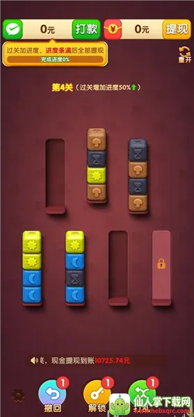 这款休闲闯关三消游戏趣味十足。丰富多样的关卡自由选,合并相同颜色方块消除,限时完成任务拿高分赢关卡,解锁红包提现赚零花钱。游戏玩法简单,将相同方块放一起消除,每次消除累计进度。技能实用,撤回、解锁、打乱助玩家灵活操作。特点鲜明,内容丰富有趣,随时能玩,风格清新简约。亮点众多,关卡操作核心明确,消除判定规则清晰,特色道具助力,闯关后还能拓展玩法解锁兑换装饰,打造专属空间,很值得一玩。