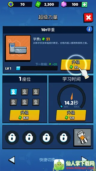 4、例如训练力量的设施,升级学费、学习时间等等;