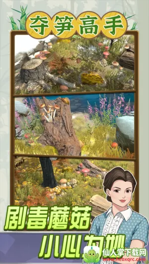 夺笋高手是一款模拟赶山题材的休闲益智经营游戏。玩家扮演赶山人深入山林找山货,采集竹笋、蘑菇等,卖钱解锁更多种类或山头,还能升级道具、扩建店铺,体验赶山乐趣与经营玩法。