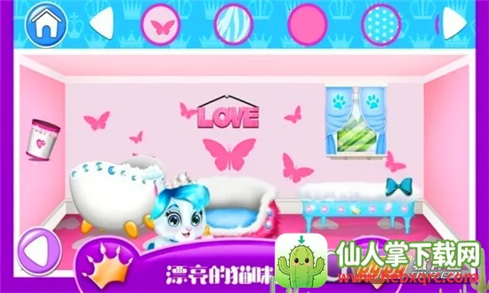 2. 多样房间随心装扮:提供多种房间模板,进入游戏可为宠物挑选满意房间。而且房间装饰品丰富,装扮宠物房间时,宠物家架、玩具和墙纸画报等应有尽有,可充分发挥孩子的创意。