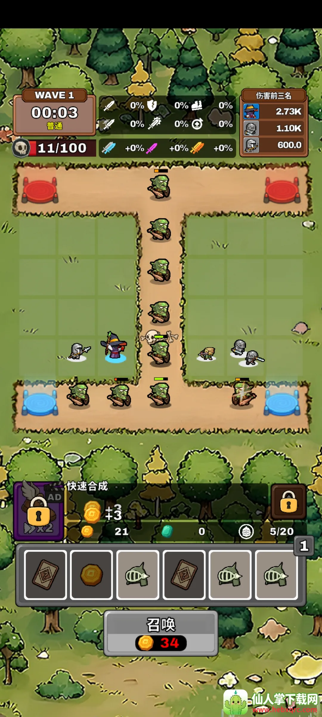 2. 多样元素:包含塔防策略、卡牌游戏等多种元素,还有超过10种敌人,每场战斗充满挑战与不确定性。