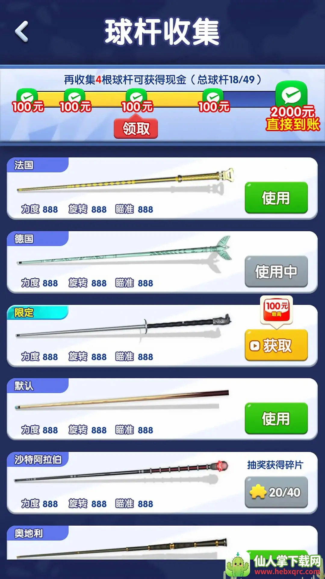 2、单人闯关升级,解锁独特球杆皮肤并享受专属音效体验。