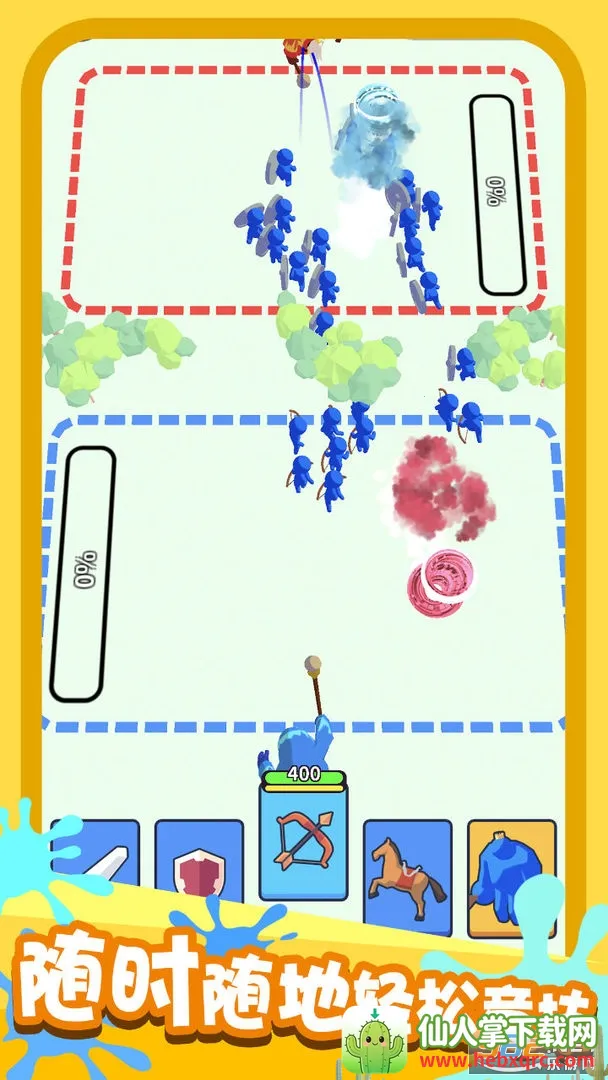 3. 玩法战术随心设计:根据兵种特性克制敌方英雄,超轻度策略塔防。5大关卡,50小关,可随玩随停,自由发挥战术。
