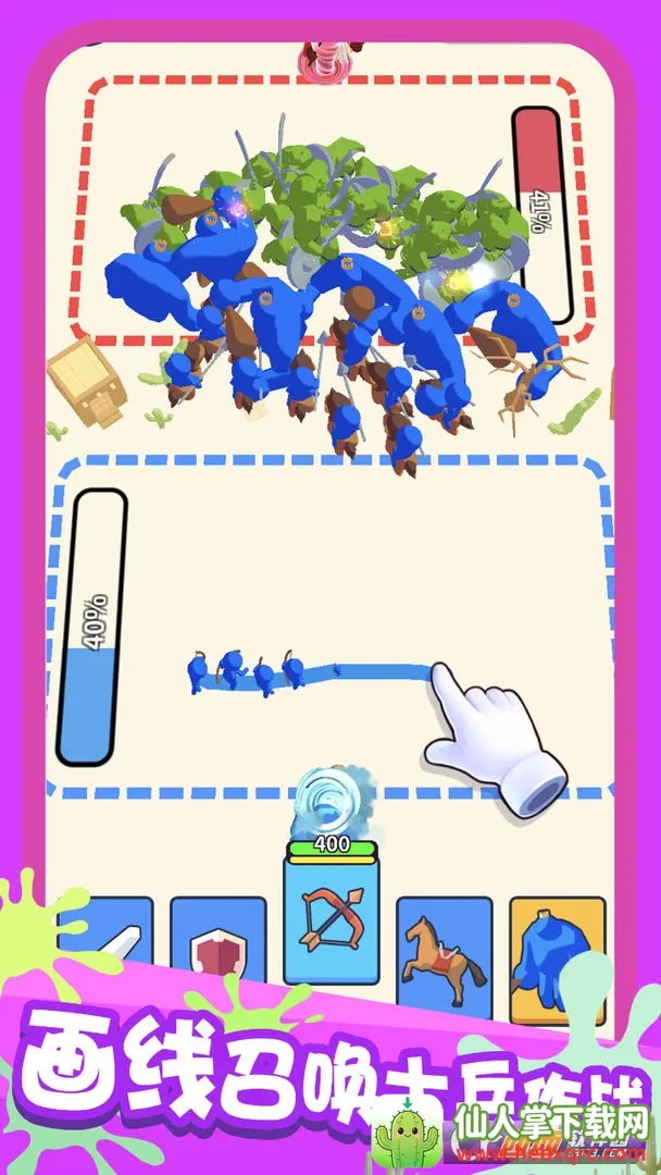 2. 精彩闯关,乐趣无穷:设有多个关卡,玩家通过画线召唤士兵自动战斗,成功消灭关卡内所有敌人即可获胜,并获得金币和道具奖励。随着关卡推进,还能解锁更酷炫强大的高级兵种以及神兽功能,不断挑战新的难度,在闯关过程中享受战斗的乐趣,感受逐步变强的成就感。