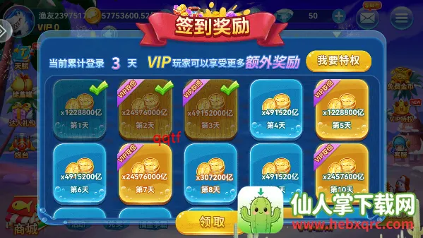 2. 免费炮台:炫酷永久炮台免费送,让玩家在捕鱼时更具优势,体验感更佳。