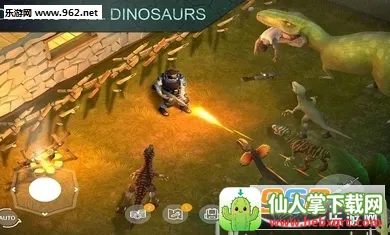 1、游戏以侏罗纪时期为背景,3D 引擎打造的画面精美细腻,恐龙动作逼真,音效带感,能带来沉浸式体验。