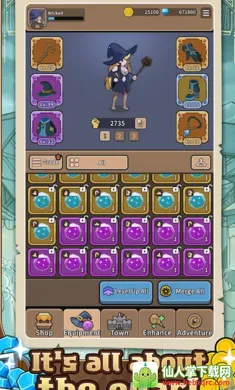 3. 装备升级系统:能升级包括法杖、帽子、长袍等在内的女巫装备,通过镶嵌宝石并融合宝石,精进女巫技能。