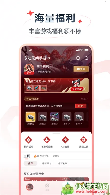 3. 海量福利轻松领:绑定游戏帐号,解锁特权buff加成,每日签到领福利,道具惊喜掉落,游戏活动丰富,周边福利礼包也领不停。