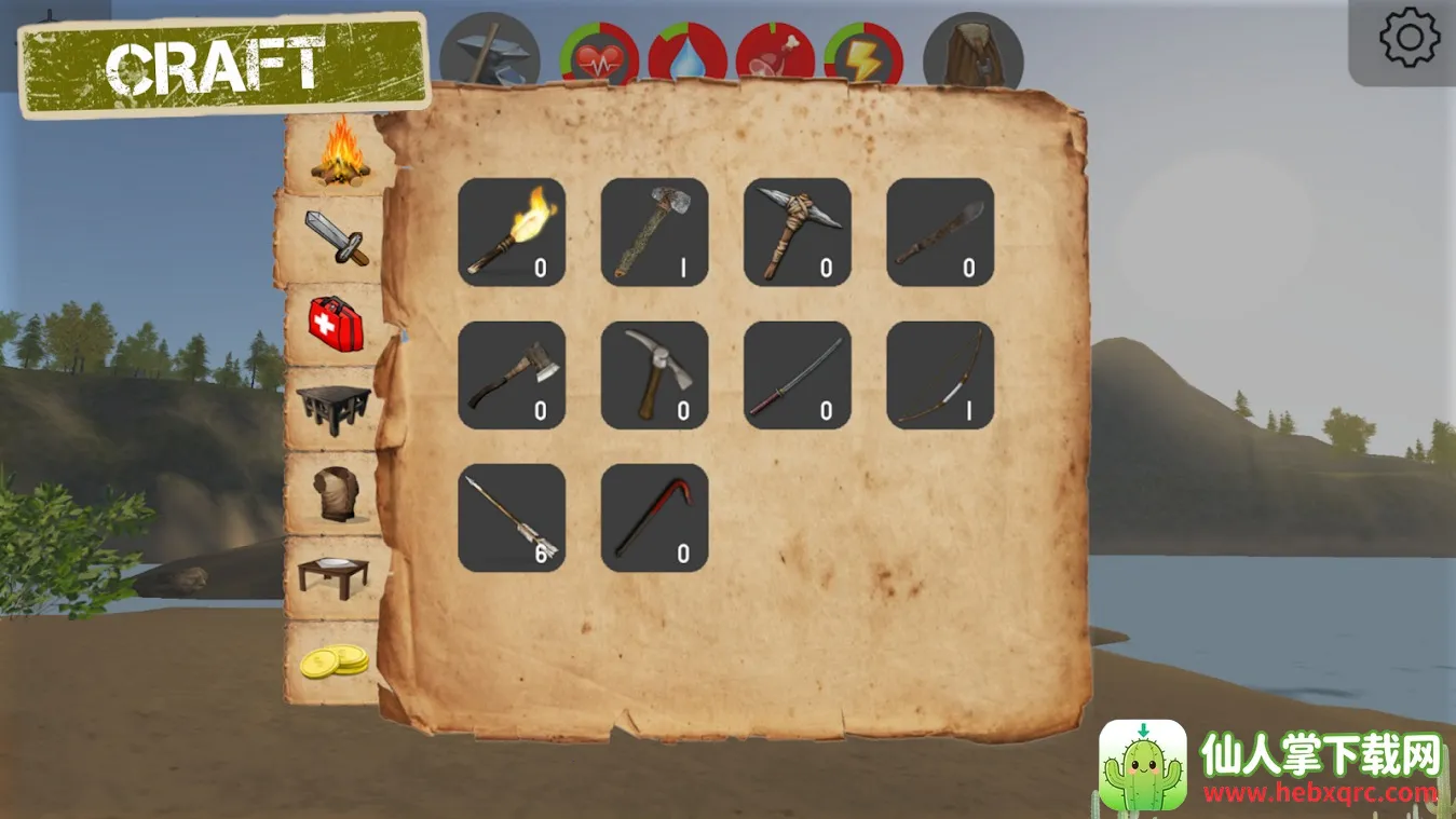 2. 需运用一切找到的物品来生存,像捕猎野生动物、鱼类,收集水果克服饥饿。