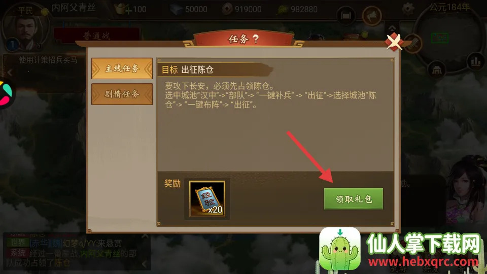 2、点击领取礼包,否则看不到新任务。