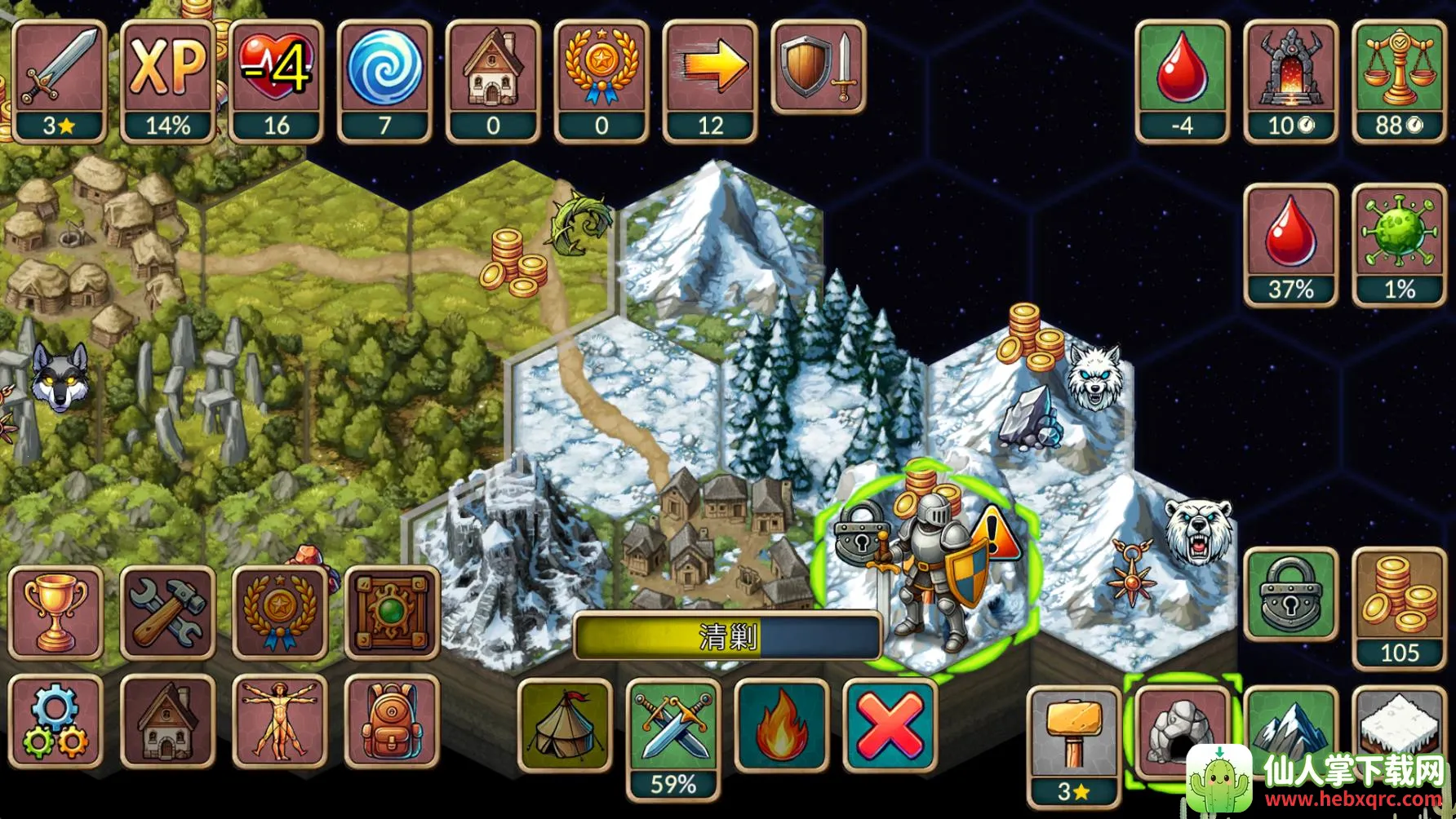 玩法上,你能在广阔地图选地方立国,探索、战斗、经营啥的都有。比如可以去冒险找装备,像在带镐子区域砍树获取资源做装备;还能在商店买道具装备。操作也不难,看右上角提示、左上角属性,左下角背包、设置啥的,右下角执行任务。沙盒模式能慢慢规划,噩梦模式挑战高难度。不管你喜欢啥节奏,都能在这找到再来一回合的理由,快来试试吧!