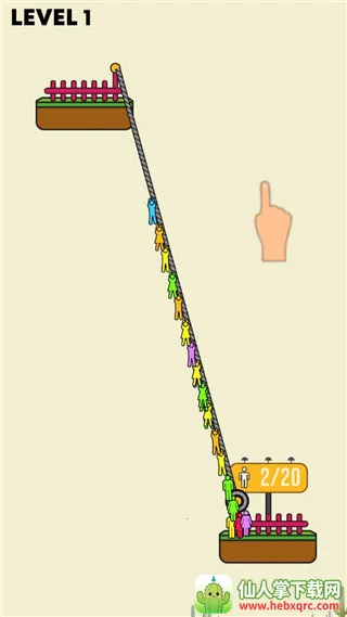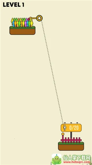 4、然后进入第二关便可开始游戏。同理,玩家需要搭建绳索,让这些人都到达安全区;