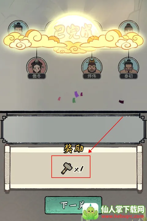 4. 闯关玩法独特:设有丰富关卡,按文字提示拖动人物头像修缮族谱,操作虽简单却需精准判断,过程紧张刺激,通关还有锤子奖励助你打造家园。