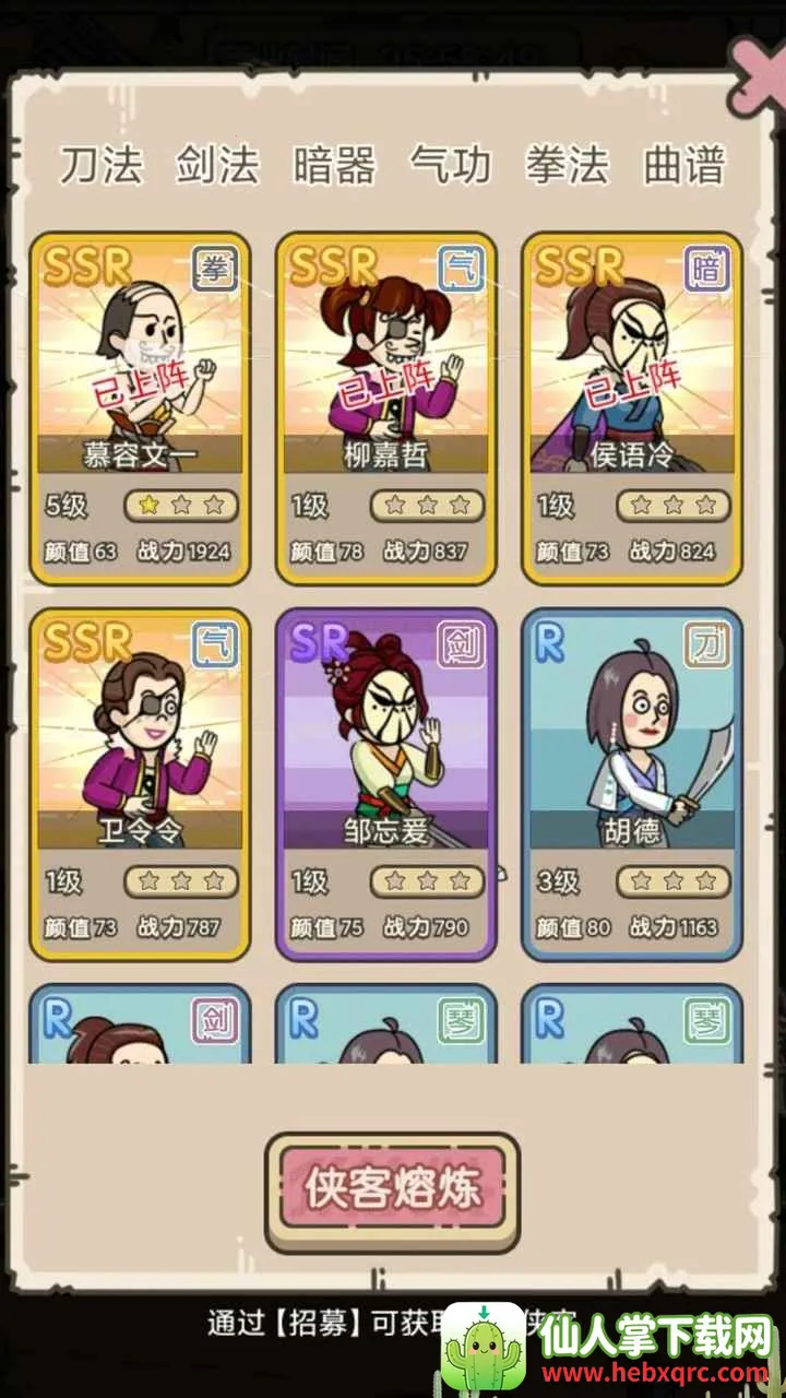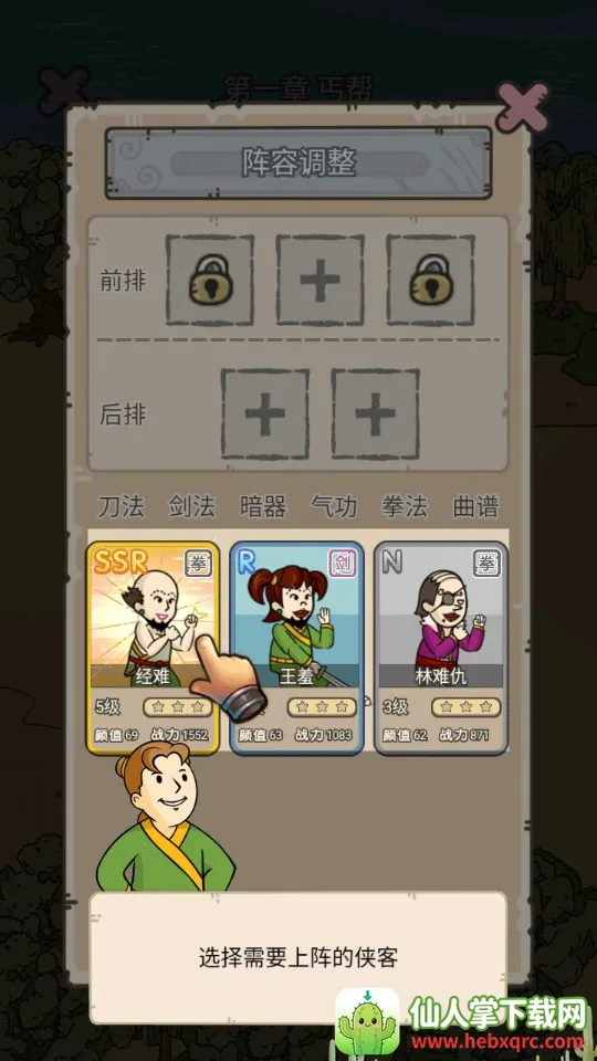 这游戏咋玩呢?一开始你继承个小门派,先招兵买马,通过抽卡得不同品质侠客。有了弟子后,给他们安排活计,比如委派到酒馆等建筑值班,升级建筑也能提高收入和解锁玩法。养成英雄有多种方式,像升级升星、修炼内功、修炼武林功法等,这些在藏经阁、练功场就能实现。你还能和其他门派战斗,通过江湖历险、勇攀高塔、华山论剑来壮大实力和声誉。游戏操作简单,画面精致,玩法多样,绝对能给你带来独特的江湖体验,快来试试吧!