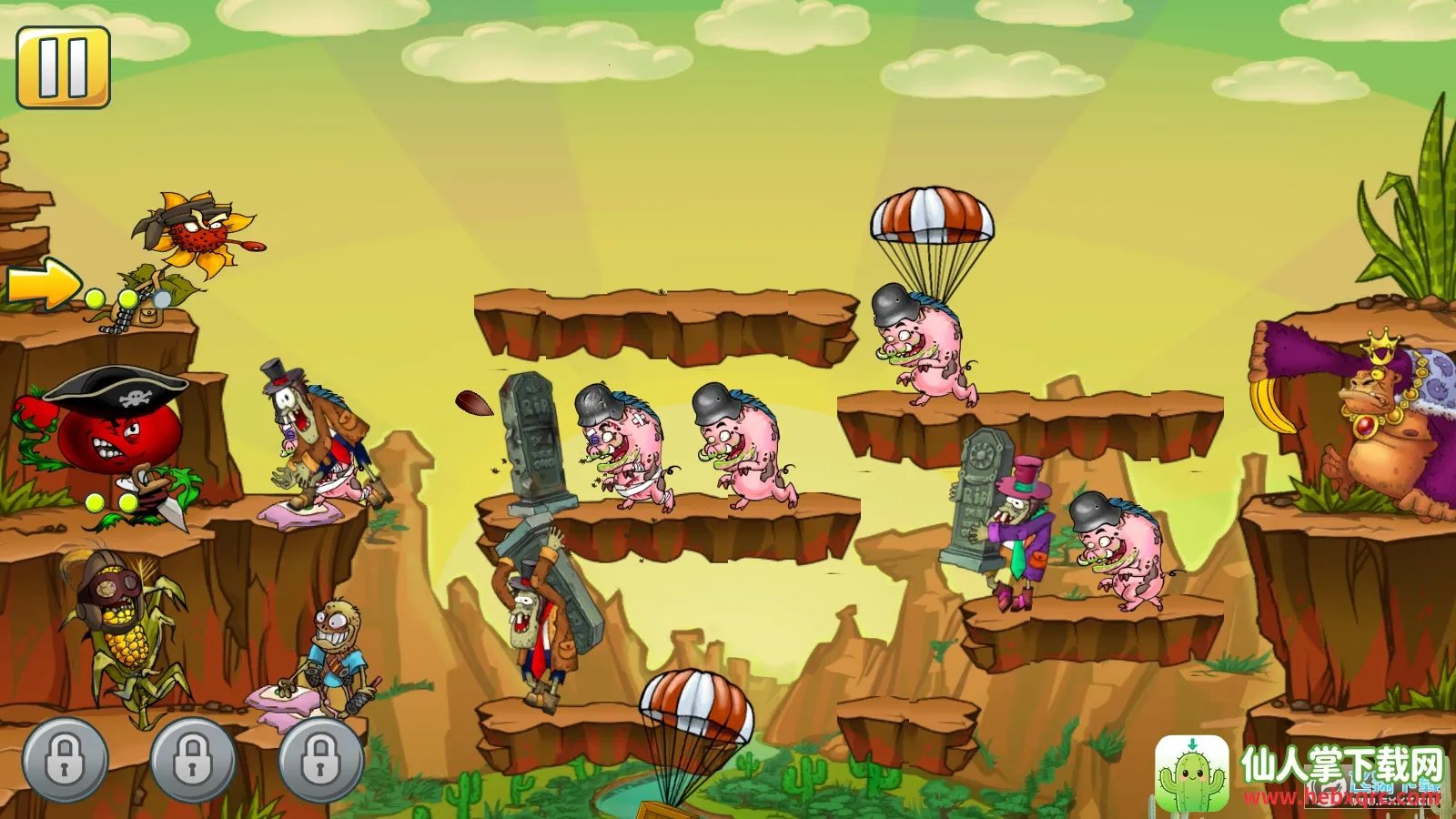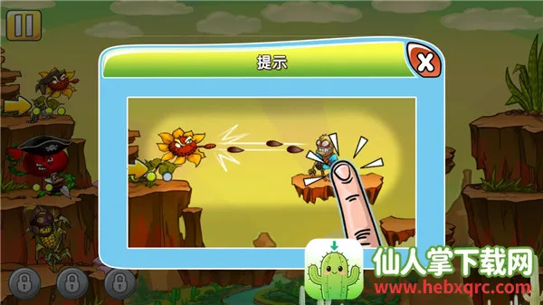 1. 独特融合塔防与射击玩法,玩家要控制植物射击角度攻击僵尸,突破关卡障碍。