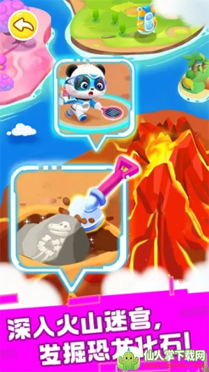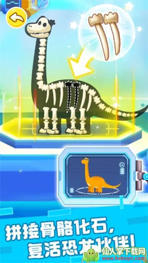 4、在后续关卡中,孩子们需要参与重建恐龙星球的复杂活动,包括使用探测仪在森林中挖掘骨骼化石来复活远古恐龙。