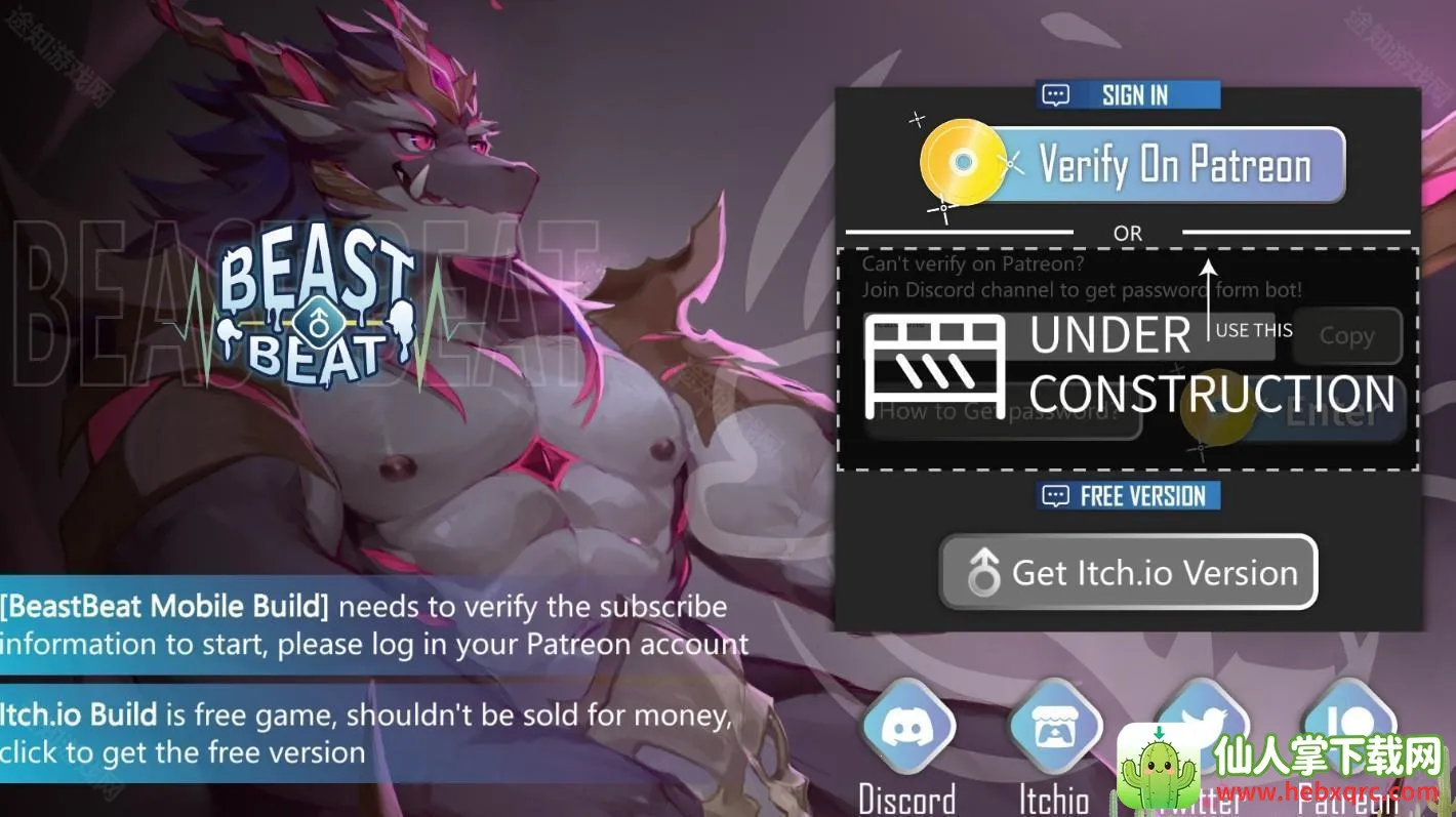 想知道beastbeat野兽节拍怎么登录?看这里!这是一款超火热的音乐节奏游戏。游戏里有可爱的卡通兽人角色,关卡场景超有创意,还有超多好听歌曲。玩法多样,点击划屏旋转,跟随音乐节奏完成屏幕上的操作指令,如点击滑动等,遇到连击符号长按,随着关卡难度提升还能激发独特野兽技能。能选择不同兽人角色演奏,更换演奏乐器,装扮喜欢的形象。登录方面,游戏中必须下载0.11.1版,使用密钥登录,密码为beatGame ,点击下方的log输入,点击会跳转到官网付费页面,可尝试长按不动切换后台等。成功输入密码后即可进入游戏,后期不用再输密码直接开启。在这能打破纪录获荣誉,还能按歌曲列表找美妙音乐随时聆听,有丰富CG动画和歌曲,还有各种道具如加速道具或保护罩道具。快来体验吧!