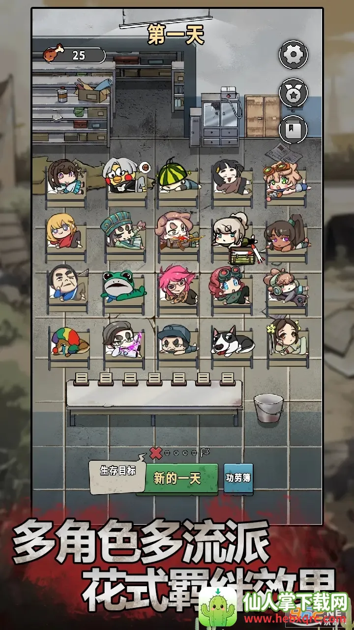这款末日题材游戏很有特色。它是多梗Roguelike手游,操作简单内容有趣。**躺平系统**是亮点,躺着就能收获物资抵御丧尸。有多样角色和羁绊效果,能化险为夷。敌人招数多,需选最佳策略防御。画风是DQ版卡通,不单调可怕。阵容搭配丰富,操作简单易上手。还有各种有趣梗和隐藏成就,完成挑战能获奖励。新手指南详细,对新手友好,能让人充分享受末日生存的乐趣。
