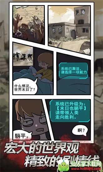 末日也躺平2026官方最新版本是一款多梗Roguelike手游。玩家在末日解锁躺平系统,躺着收物资。选合适伙伴搭配羁绊,应对危机。有宏大世界观、精致剧情,操作简单内容有趣,还有多种玩法与技巧。