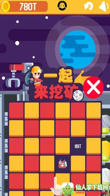 3、工具合成升级:从基础铁铲起步,逐步合成更高级工具,每把新工具带来效率跃升与视觉惊喜,解锁新矿区、雇佣矿工、建造运输带,组装黄金矿工飞船。
