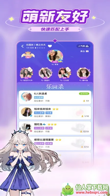 乐园杀是一款超有趣的角色扮演游戏,能满足你对策略推理和社交互动的需求。这里有多样身份,像炸弹狼、星术师、魔术师等,每个角色都有独特技能,每局都是全新挑战。玩家要通过蛛丝马迹找狼人,好人完成任务或揪出狼人,狼人则要在被发现前干掉好人与中立。简单的沟通方式助你交换信息,轻松享受对局。它提供多个地图、模式和丰富角色皮肤,还有可爱画风,能让你打造个性化角色形象。不仅能和好友线上组局、随机匹配、线上邀请,还能结识众多有趣灵魂。在这里,你可以运用缜密逻辑解决谜题,与志同道合的朋友一起嗨翻天,感受策略推理的乐趣,开启全新社交体验,快来下载吧!