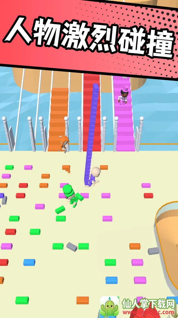 这是一款令人眼前一亮的休闲竞技手游。它将颜色匹配、快速建造与实时竞技巧妙融合,玩法直观,节奏紧张,趣味干扰元素十足,轻松上手又充满竞争乐趣。操作简单,通过移动与点击就能完成收集与搭建,每局时间紧凑。竞技性与趣味性兼备,颜色匹配规则清晰,还有路线规划和干扰策略。视觉反馈明确,不同颜色区分明显,桥梁搭建有物理表现,增强沉浸感。成长系统助力进阶,比赛获金币可升级砖块属性或解锁新角色,值得一玩。