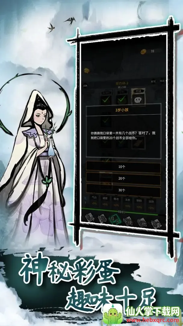 这款水墨国风修仙题材的肉鸽游戏亮点颇多。关卡随机生成,结合秘宝构筑提升能力,策略选宝闯关更轻松。放置修仙,等级共享离线也能获丰厚修为。肉鸽探索有密室机关,解谜元素带来别样通关体验。神仙分五行阴阳7种属性,相互克制,布阵站位有讲究。主线关卡穿插小故事和脑筋急转弯,趣味十足。还有20种装备套装,自由构筑秘宝池,分多种流派,能让玩家以弱胜强,享受丰富多样的修仙乐趣。