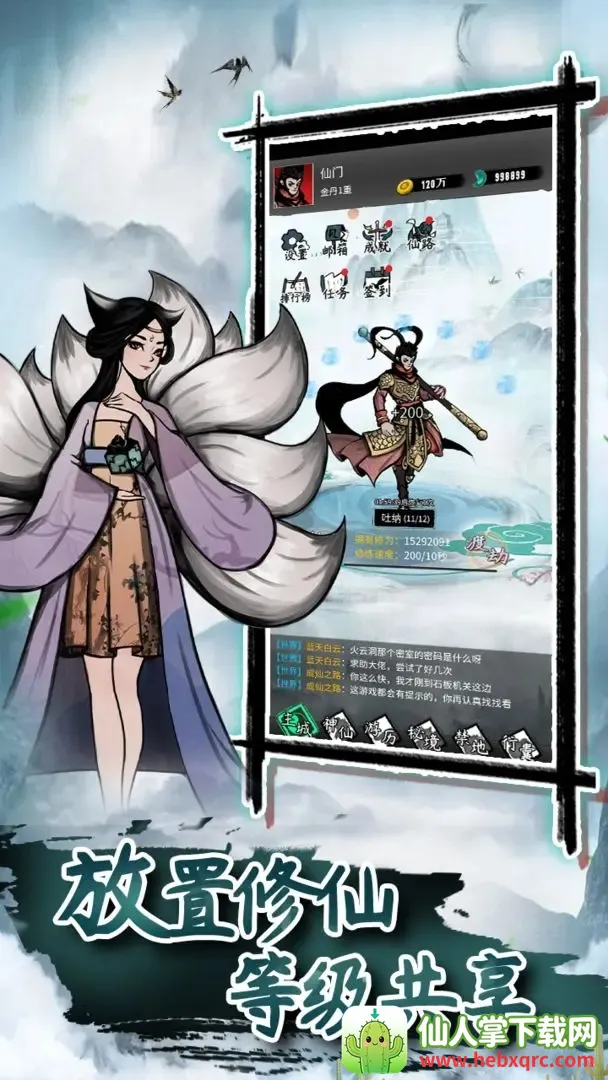 2. 放置修仙:等级共享,离线也能获丰厚修为,所有神仙共享境界等级。