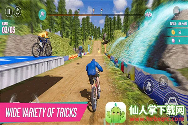 越野自行车特技2是一款自行车竞速游戏,画面精致写实。玩法多样,有多种地形、特色关卡等。能操控车辆冲刺、表演特技,通过收集金币解锁车型,与全球玩家竞争,在排行榜展示实力,快来体验。