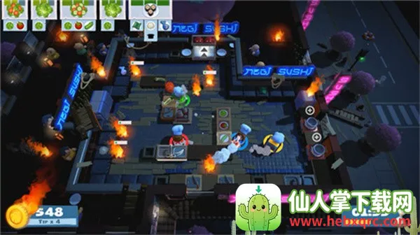 1. 支持多人联机:游戏支持1-4人同玩,带来有趣的竞技玩法,能与好友一起享受烹饪乐趣。