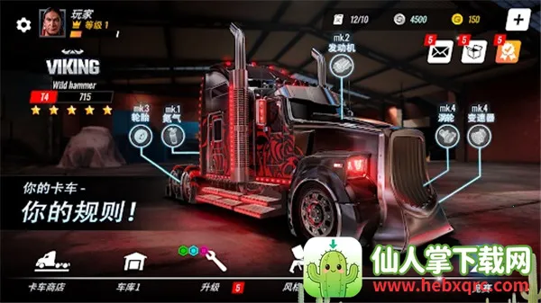 3. 提供多款风格迥异的重型卡车,每辆拥有不同的速度、操控、马力,可自由选择与升级。